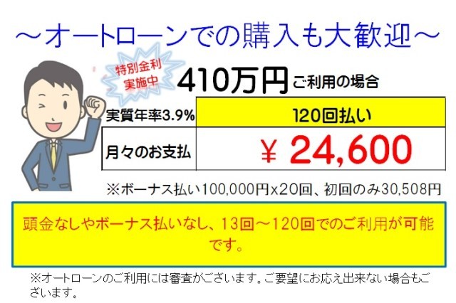 車両価格は消費税10%内税価格です。(諸費用別途)