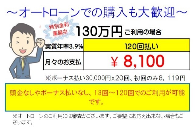 車両価格は消費税10%内税価格です。(諸費用別途)