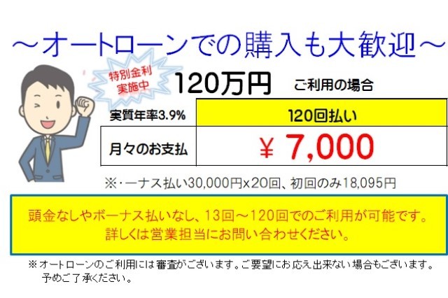 車両価格は消費税10%内税価格です。(諸費用別途)