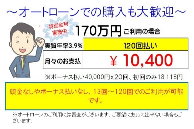 車両価格は消費税10%内税価格です。(諸費用別途)